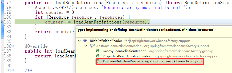 同时可以看到是,loadBeanDefinitions支持三种类型的参数,Properties说明Spring的配置支持properties文件,而Groovy可能与Groovy语言有关;