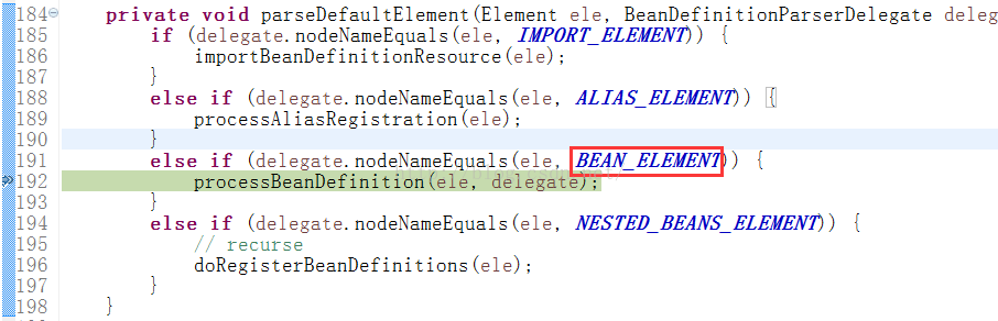 parseDefaultElement(分析每一个Bean元素)