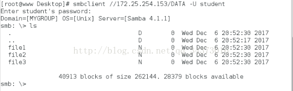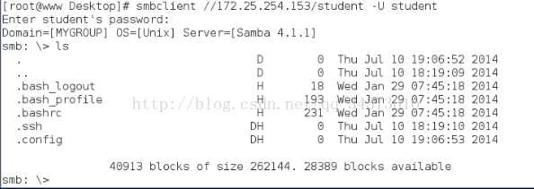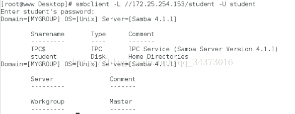smbclient -L //172.25.254.153/student -U student ---student用户登陆