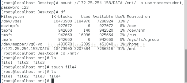 mount -o username=student,password=studnet //172.25.254.239/student /mnt/ ---挂载