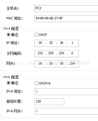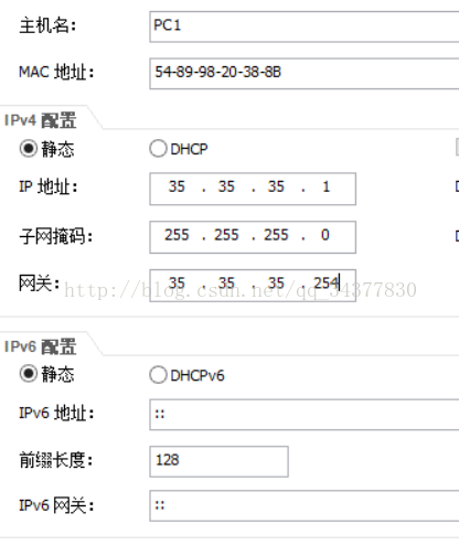 1.配置PC1和PC2的相关ip地址,子网掩码和网关地址: