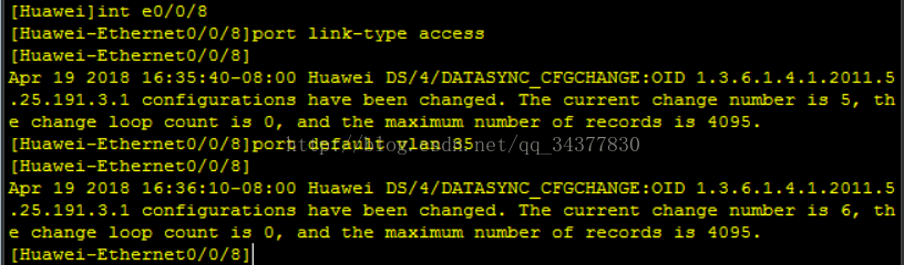 ②进入e0/0/8端口设置access模式,并把它加入vlan 35