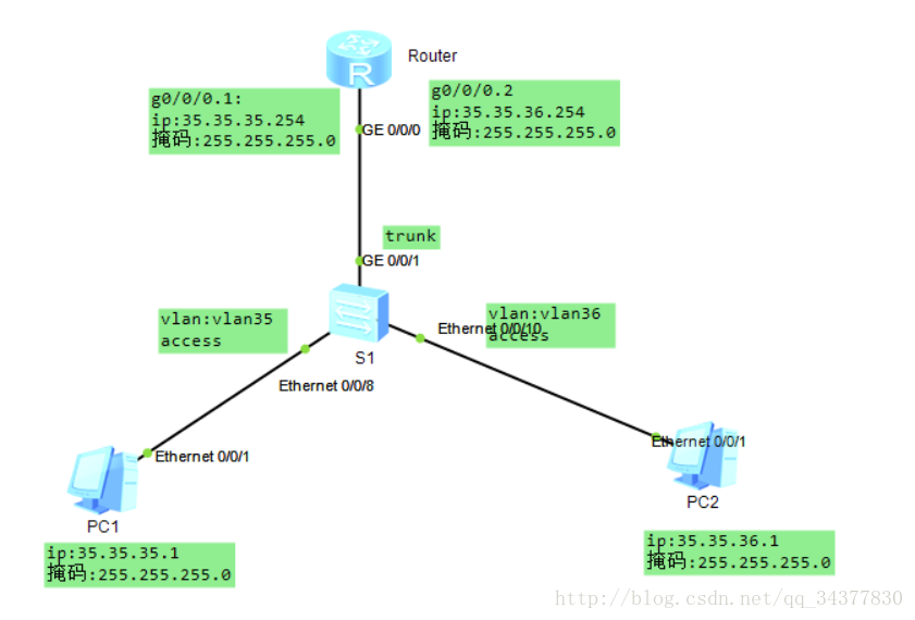 使用ensp配置路由器单臂路由实现不同vlan之间的互通,记录自己配置的过程,如有错误,望指出。