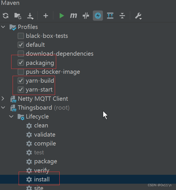 Thingsboard(root) -> Lifecycle -> isntall或者package: