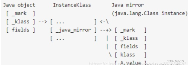 insanceKlass里有个 _java_mirror 字段(见下图),指向该类所对应的Java镜像——java.lang.Class实例