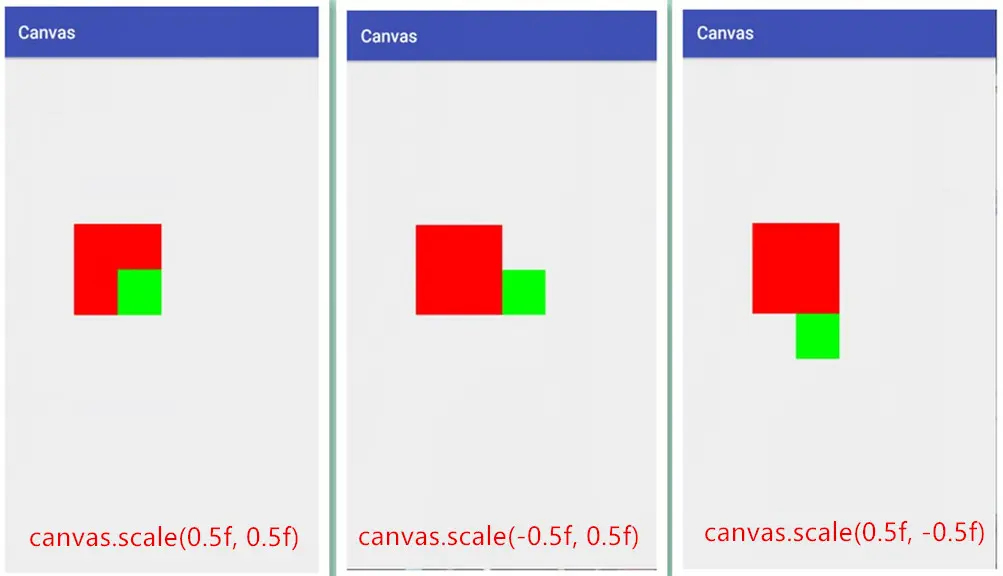 canvas.scale(-0.5f, -0.5f, 100, 0)