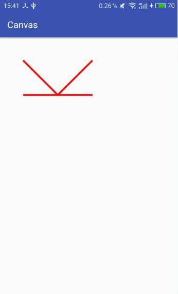 drawLine前四个参数代表起始坐标(x1,y1)和终点坐标(x2,y2),而drawLines第一个参数是float[]数组,每四个代表一组起始坐标和终点坐标的组合,如上图{200, 200, 500, 500,800, 200, 500, 500}代表两组坐标点:起始坐标(200,200)终点坐标(500, 500),以及起始坐标(800, 200)和终点坐标(500, 500),效果图: