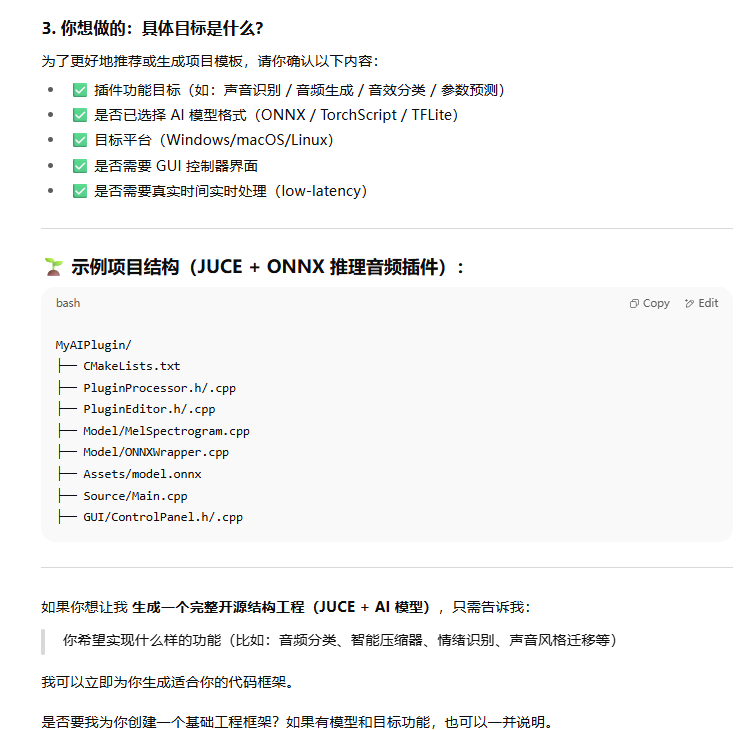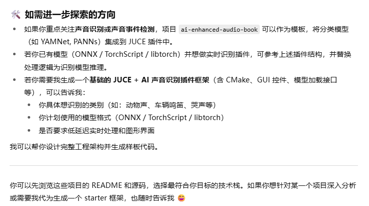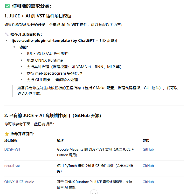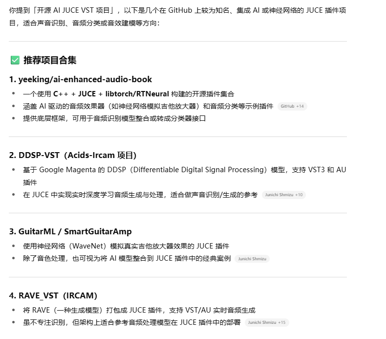 如你正在做 JUCE 音频插件 + AI 项目,推荐优先考虑: