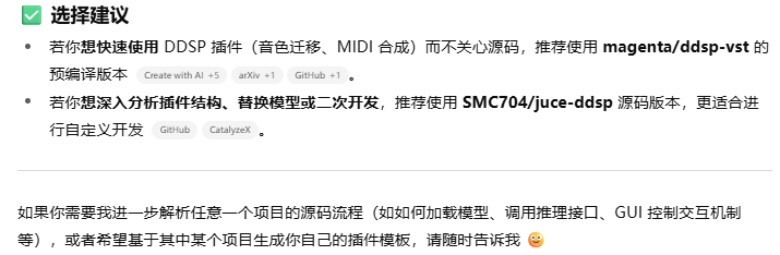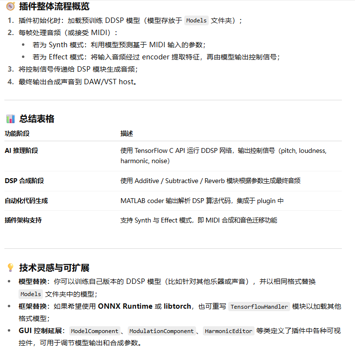 如果你希望我进一步讲解:DDSP 模型训练方法 / 如何在 JUCE 插件中部署 DDSP 模型 / 替换为自己的 timbre transfer 模型等,随时告诉我,我可以手把手带你搭建或精简这个系统。