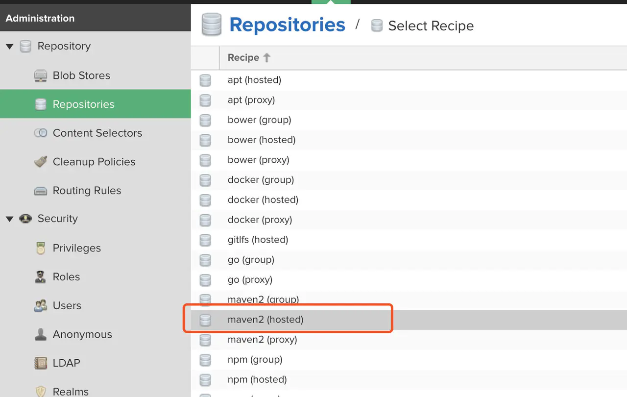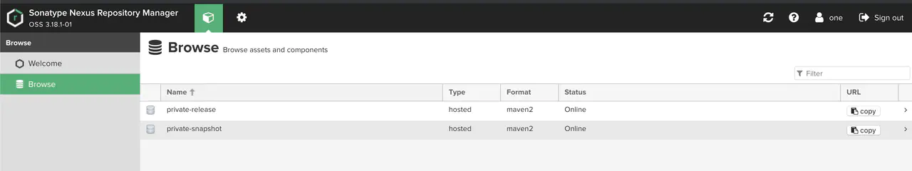 这样一来我们就创建好了自己的私服仓库,配置完成之后,开发者就可以在 Maven 项目开发中使用了。