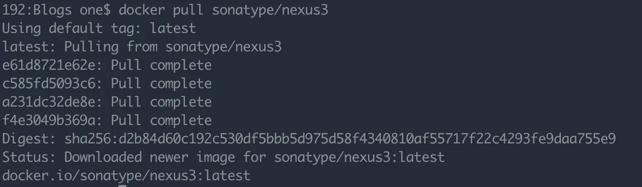 在终端控制台上使用 Docker 指令下载 Nexus 官方提供的Docker 镜像: