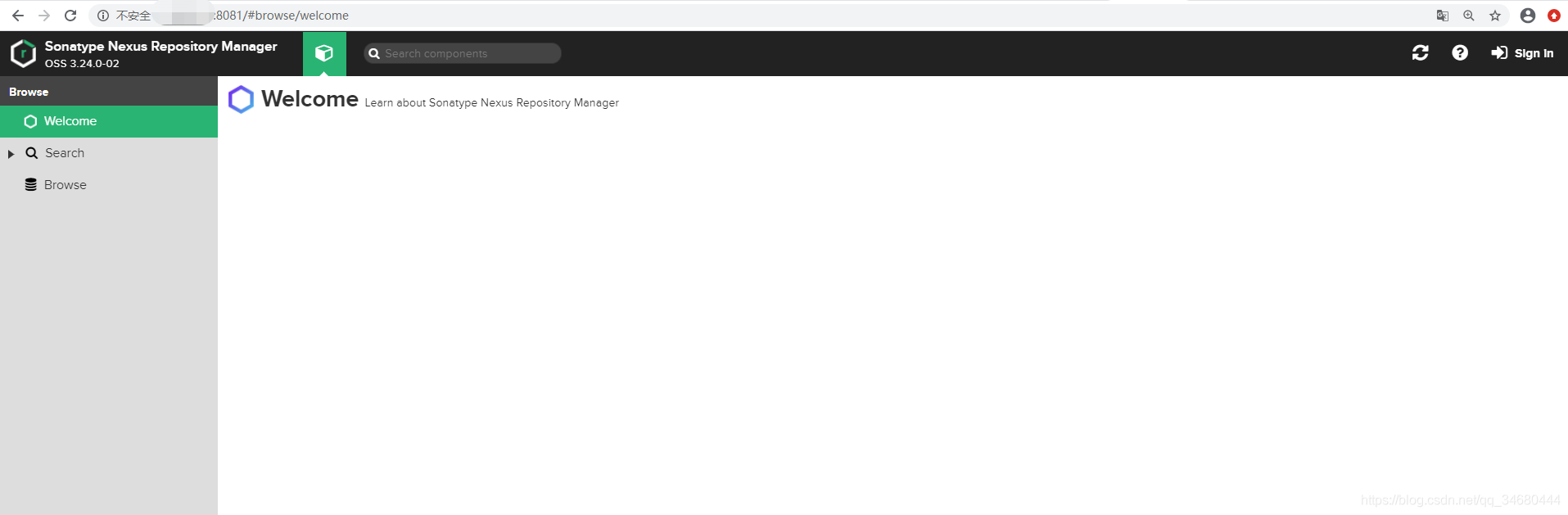 执行上述指令后,稍等片刻,访问 http://localhost:8081/ ,看到对应的 Nexus 后台就表示私服安装完成了