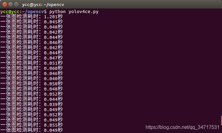 opencv4.4在进行检测之前是进行了一次初始化,后面的检测时间包括读图,检测,画框。