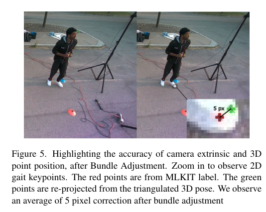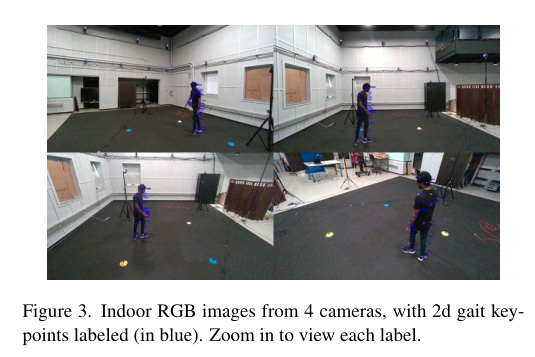 4)方法:本次工作提出一个名为 DIOR 的框架,用于数据收集、半自动标注,并提供了一个包含 14 名受试者和 1.649 百万帧 RGB 图像的数据集,附带 3D/2D 骨架步态标签,其中包括来自远距离摄像头的 20 万帧图像。该方法利用先进的三维计算机视觉技术,在室内设置中实现了像素级的准确度,通过运动捕捉系统实现。此外,针对室外远距离场景,摆脱了对运动捕捉系统的依赖,采用了一种低成本的混合式三维计算机视觉和学习流程,仅使用 4 台低成本的 RGB 摄像头,在远距离主体上成功实现了准确的骨架标记,即使在 RGB 图像中,它们的高度也受到了限制,只有 20-25 个像素。
