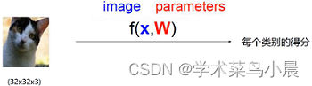 32*32*3=3072个X(像素点),假设需要分类的类别一共有10个,那么这3072个X在这10个W(类别)中有着不同的权重得分,还有b偏值项,最终最高 得分 的就是预测的分类。 -