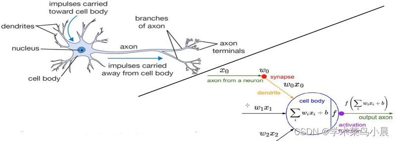 左半边是生物学上的神经元,右半边是数学上的“神经元”,可以说是非常像。