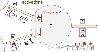 如何让 f 值更小,就是改变x、y、z,而损失函数也是这样,那么我们分别求偏导,则能得出每个值对结果的影响