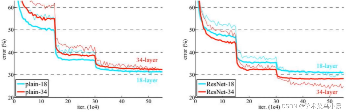 当然层数越多,可能收益越少,但是保证残差一定是小于等于之前的低层数,也就是结果一定是向好的发展。