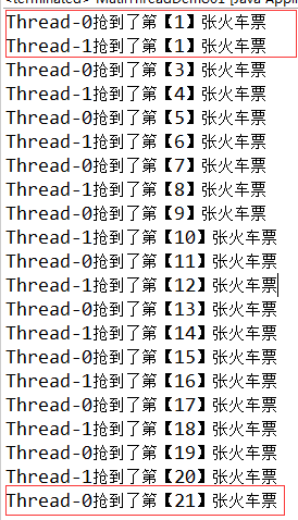 System.out.println(Thread.currentThread().getName() + "抢到了第【" + (20 - ticketCount + 1) + "】张火车票");