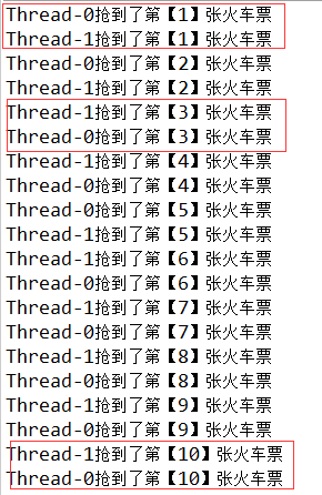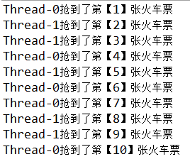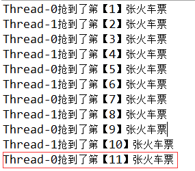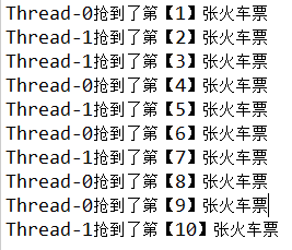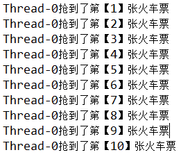 System.out.println(Thread.currentThread().getName() + "抢到了第【" + (10 - ticketCount + 1) + "】张火车票");