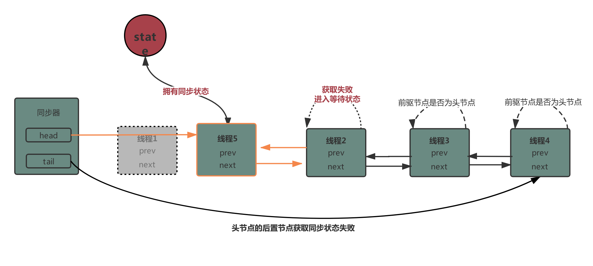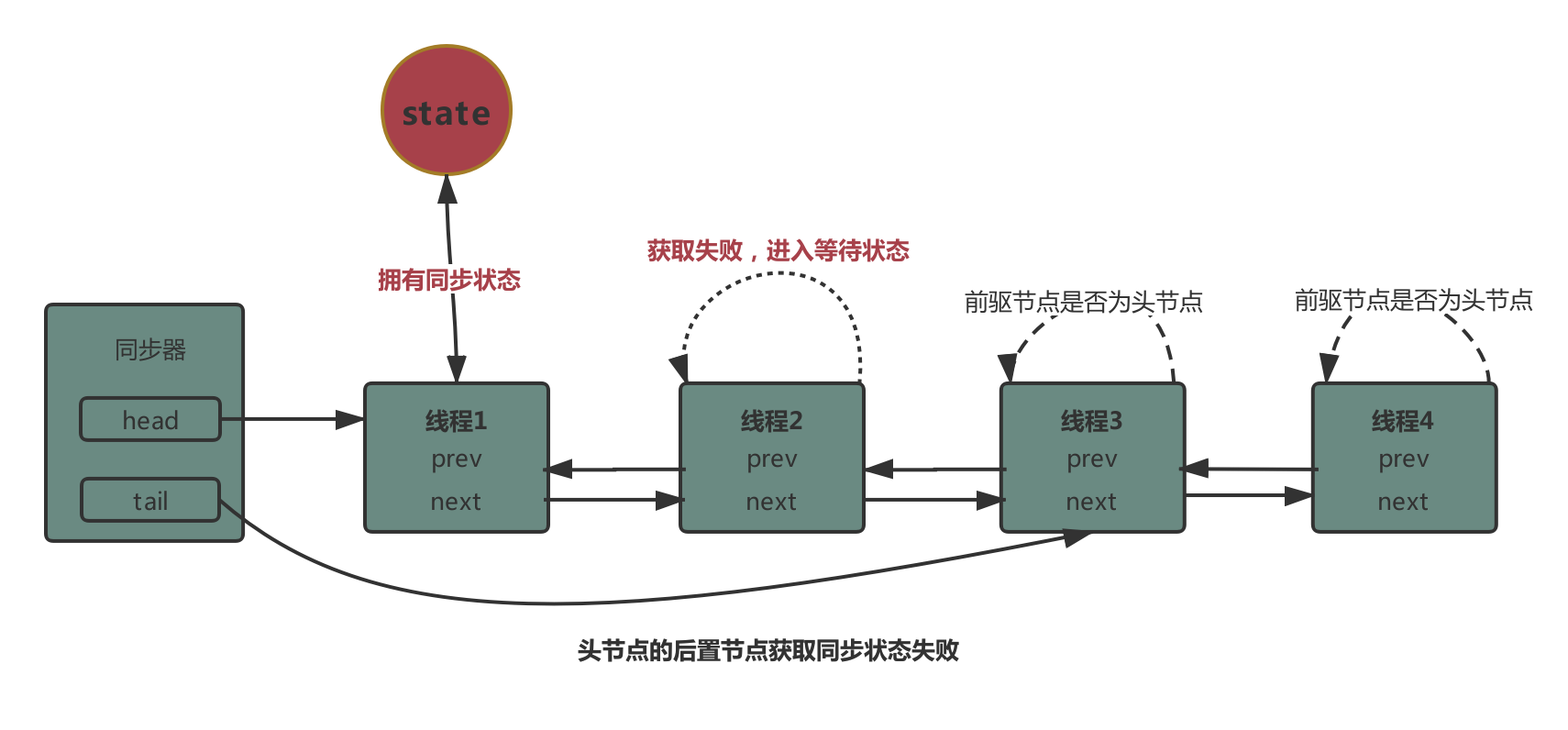 - 当线程获取同步状态失败会被加入到同步队列中
