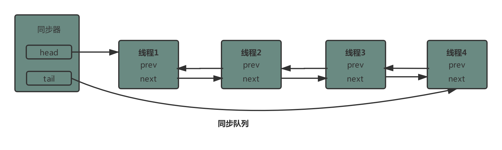 最后,获取到同步状态的线程执行完毕,同步队列中只有一个独占节点: