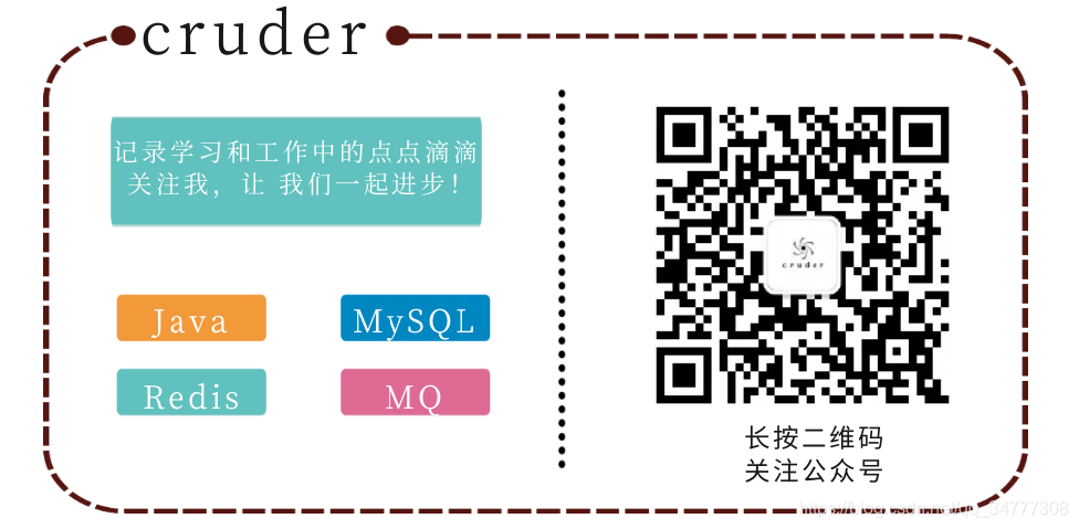 如果你是一个初中级java开发工程师,究极自学怪,想要在技术方面有所发展,寻找志同道合的朋友,可以关注笔者的公众号cruder,大家一起进步