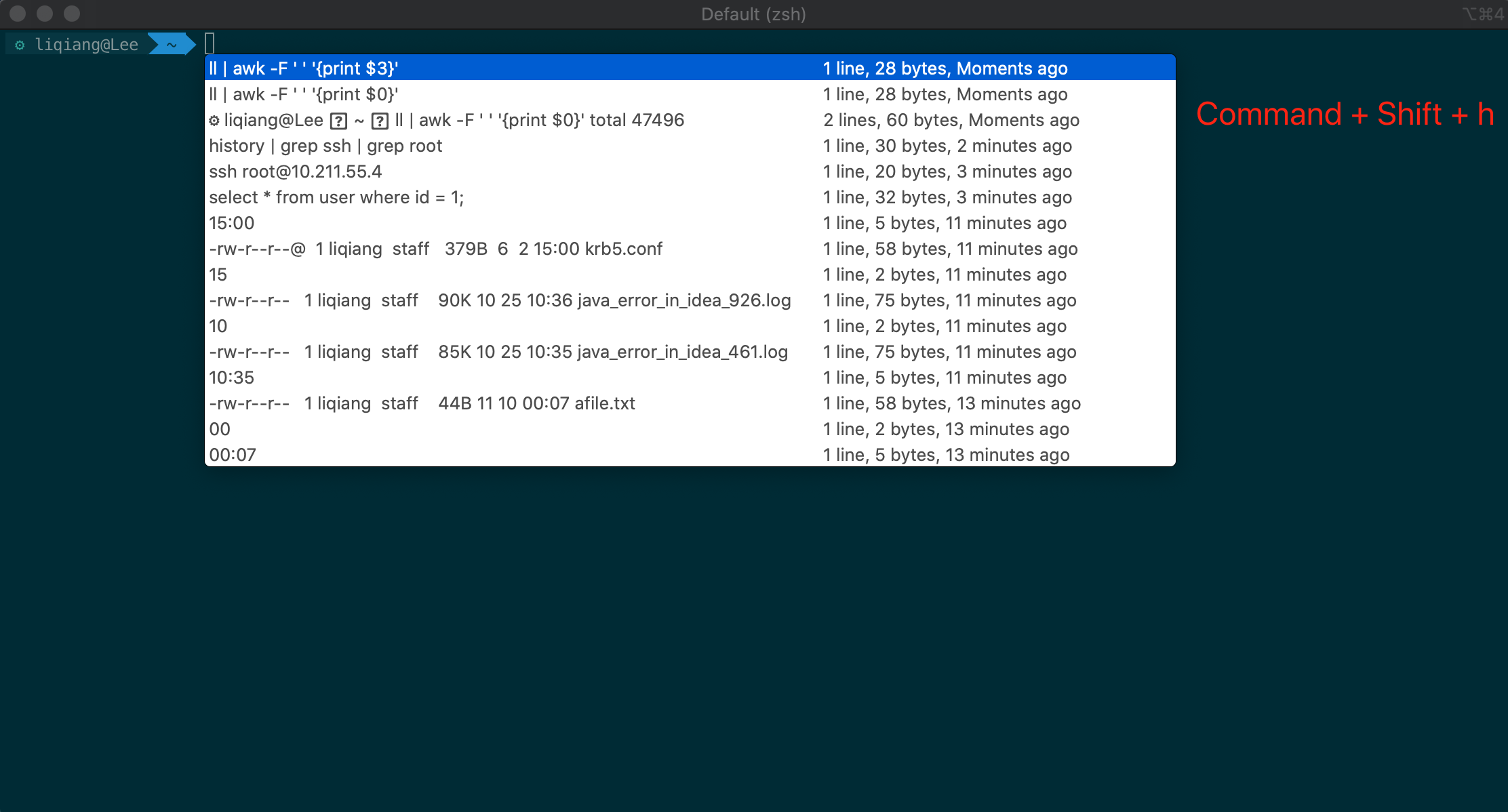 除了窗口划分,Term2的另一杀手锏就是回放。不仅可以查看剪切板的历史记录,还能像视频一样回放窗口内的历史记录!