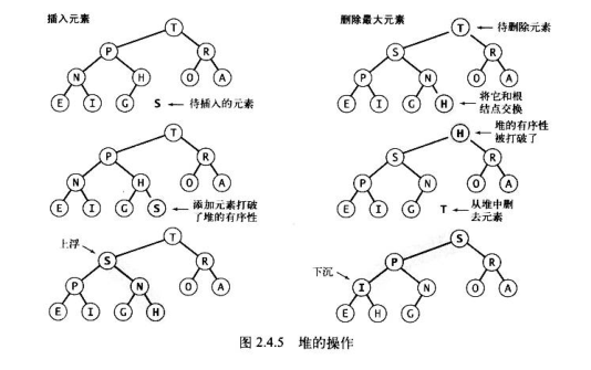 * 优先队列支持两种操作:删除最大元素和插入元素;基于堆的实现能保证在对数时间内完成它们。