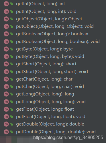 Unsafe的大部分API都是native的方法,主要包括以下几类: