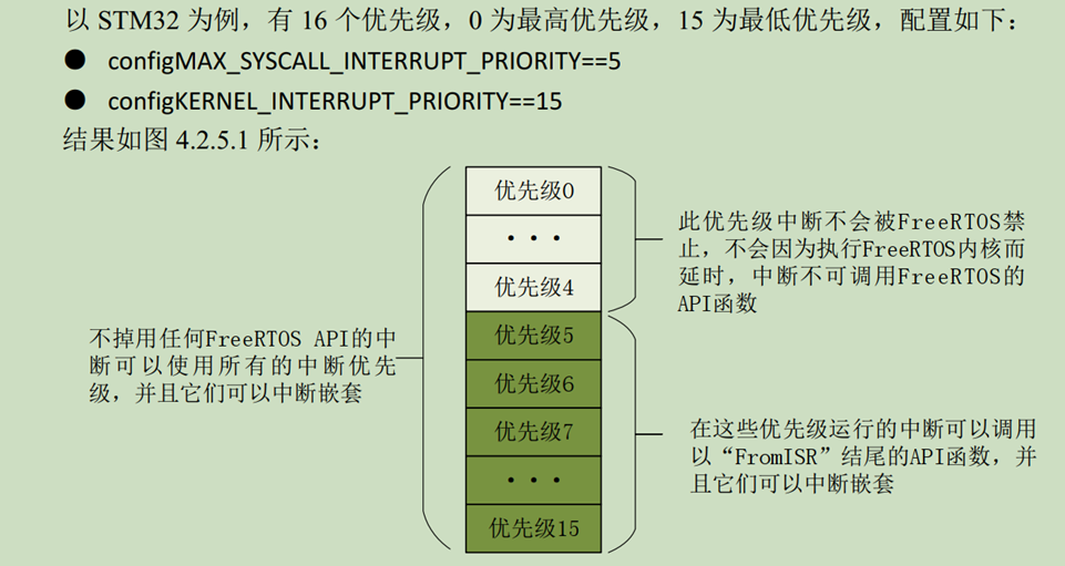 FreeRTOS的优先级是没有子优先级的,所以STM32移植FreeRTOS只能使用NVIC_PRIORITYGROUP_4,这样STM32的中断直接就有16个抢占优先级。