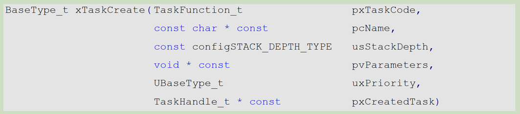 因此,不论是使用静态方式创建任务还是使用动态方式创建任务,任务的任务栈大小都应该为 ulStackDepth*sizeof(uint32_t)字节,即ulStackDepth字。