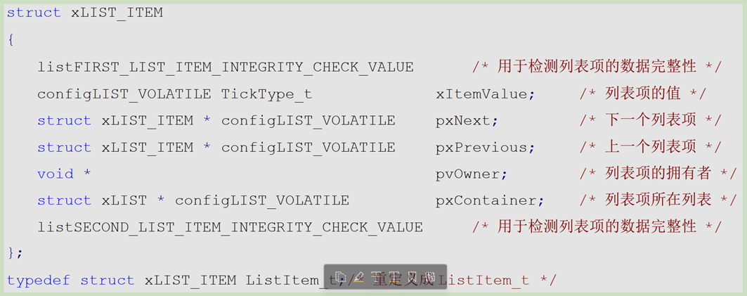 1. 如同列表一样,列表项中也包含了两个用于检测列表项数据完整性的宏定义。
