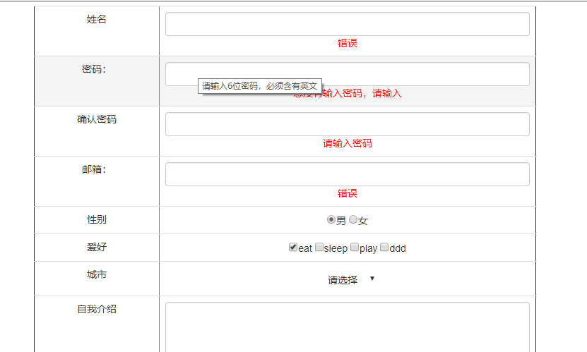 4. 如果检验成功,查找到对应的span元素进行innerHtml属性,进行赋值,然后添加属性fontcolor(“red”);进行提示即可。