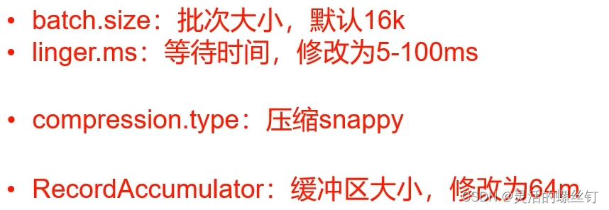 什么时候需要把RecordAccumulator设置64M. 当分区数比较大的时候。多个batch.size运行,导致缓冲区满。