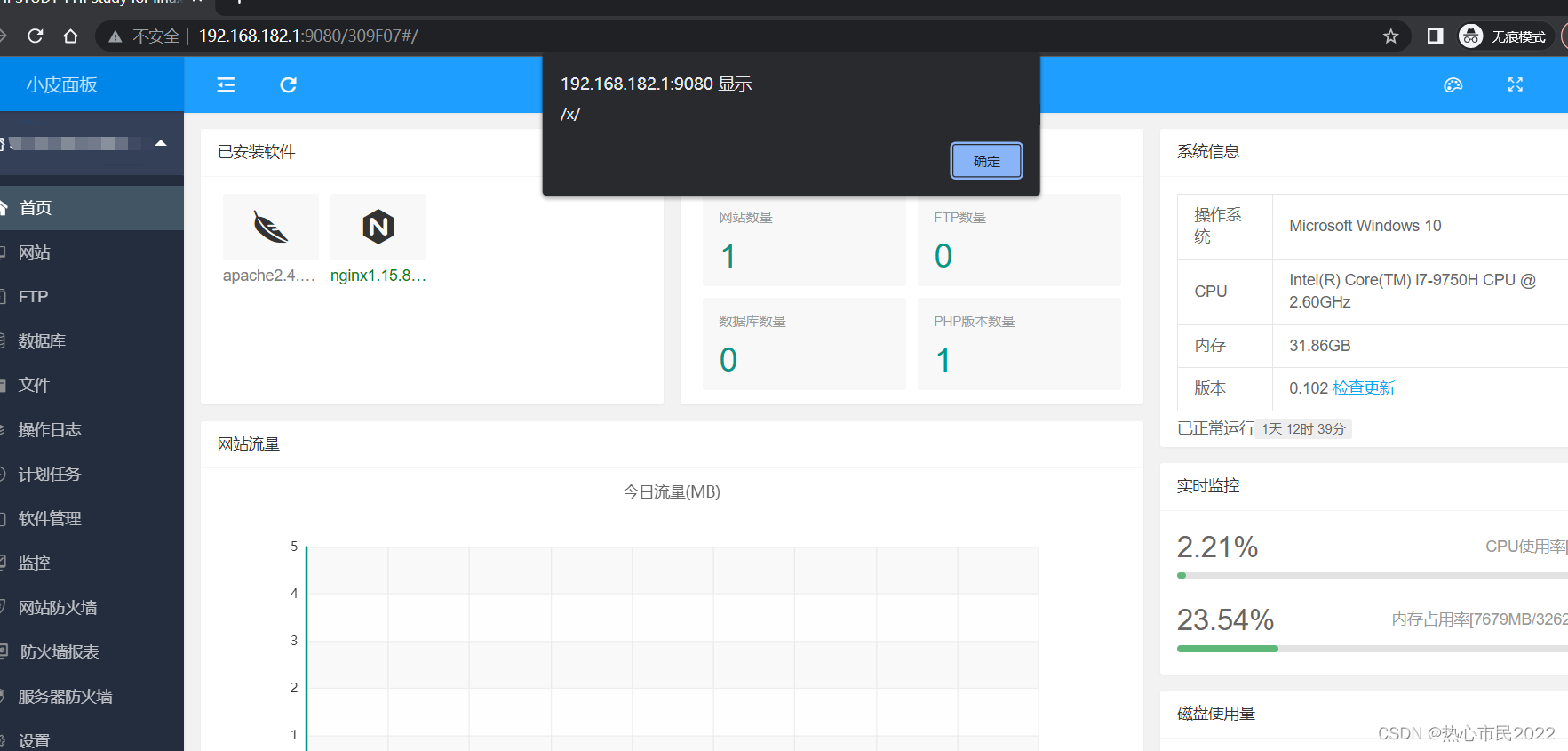 访问小皮面板界面,注意如果xss将系统打坏,建议重新安装