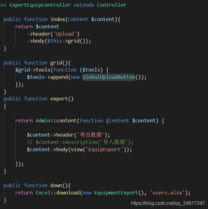 public function headings(): array //导出表头设置