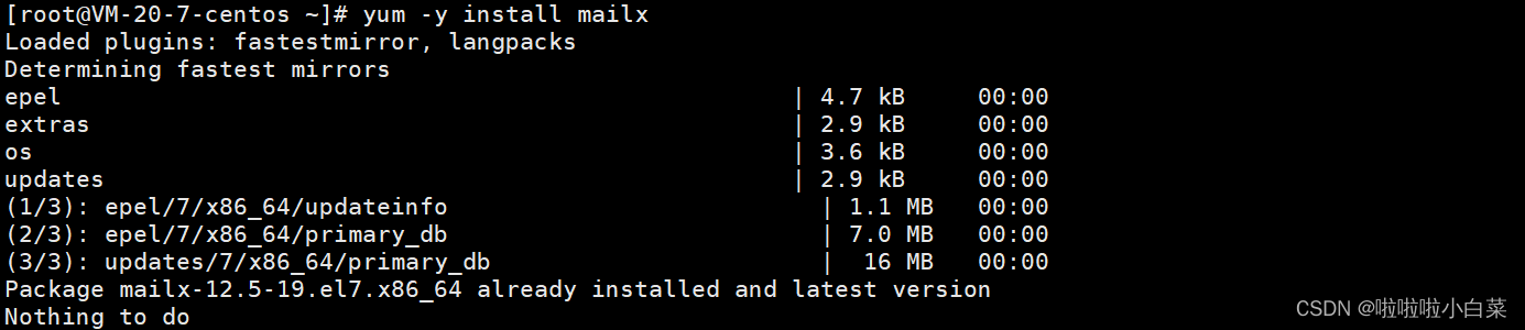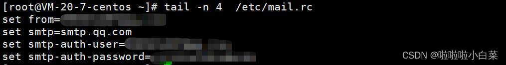 5、配置/etc/mail.rc并在最后一行加入配置信息及授权码