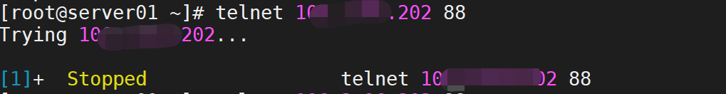 如果没有开通相应的端口,则没有任何提示,需要CTRL+C断开。