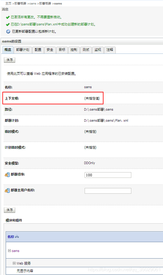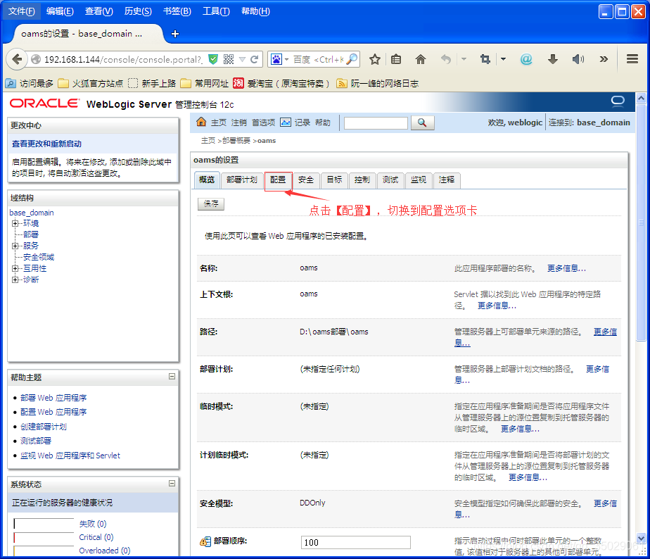 到此,在WebLogic下部署Web应用就算是完成了,切换回【部署】面板,就可以看到我们部署好的oams这个Web应用了。