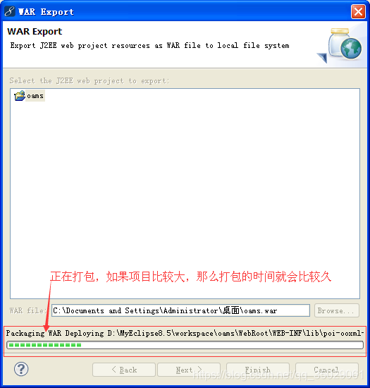 点击【Finish】,就可以将oams这个Web应用打包成oams.war了,如下图所示: