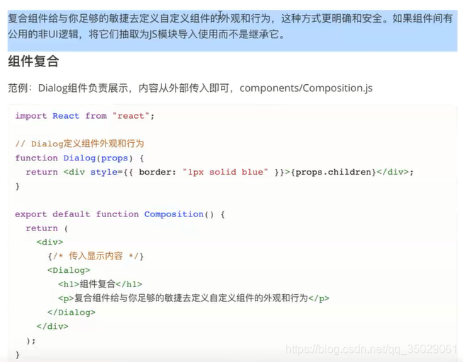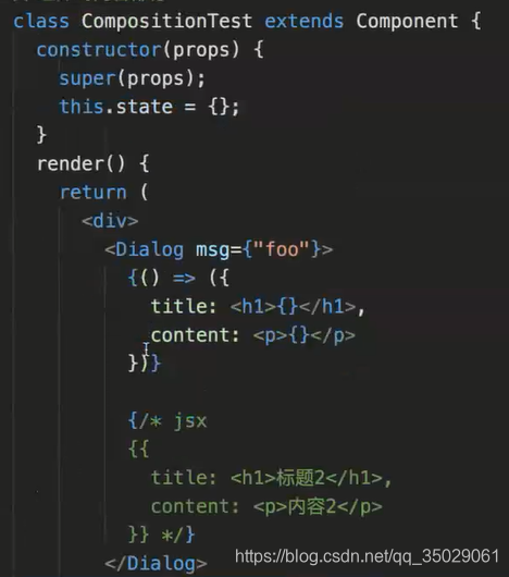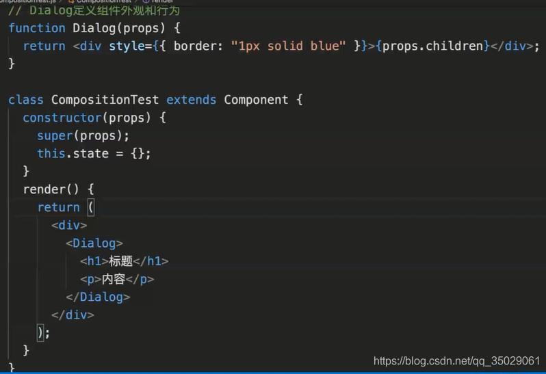 调用children函数,children就是Dialog内部的内容,传递什么children就是什么,传递对象props.children就是对象