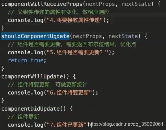 console.log(nextProps, nextState, "4.将要接收属性传递");