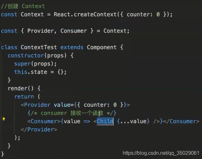 // <Context.Consumer>{value => <Child {...value} />}</Context.Consumer>