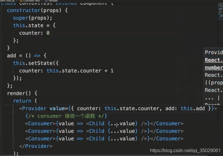 组件想要使用状态需要用conuser进行包裹,接收参数value就是privider提供的状态