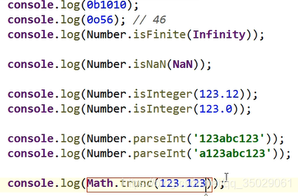 5. Number.parseInt(str) : 将字符串转换为对应的数值