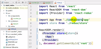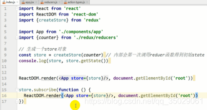 最后App要变化,要管理两个state状态,对象包装起来,真实应用有多个状态会有多个reducer