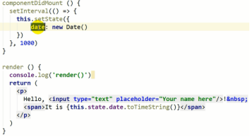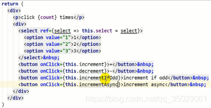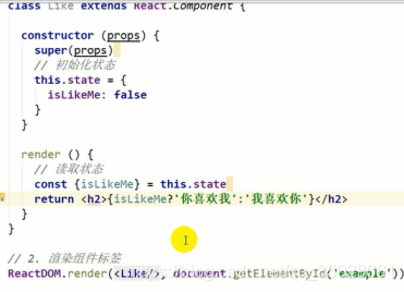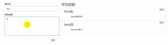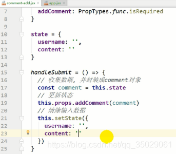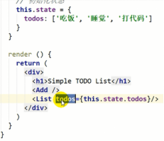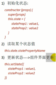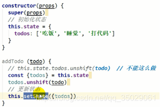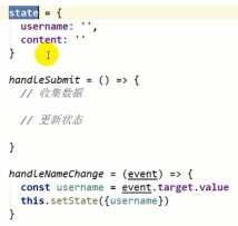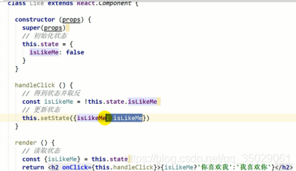 onClick事件监听,this是组件对象,调用组件对象的方法,setState是固定得到方法设置新的状态对象。左右相同名字可以省略