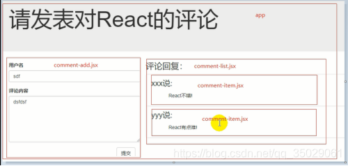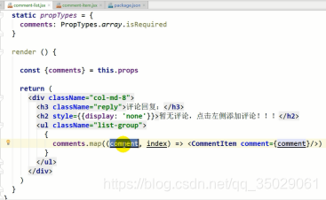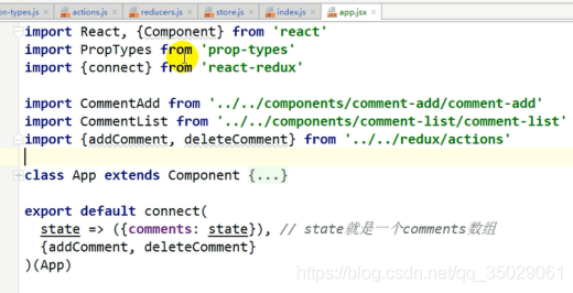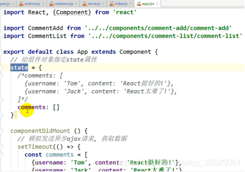 App.js中的comments属性获取,异步的操作要放到actions中去做,统一更新的函数应该是属性中传入的。以前自身的state和函数由外部的redux传入