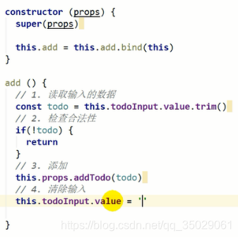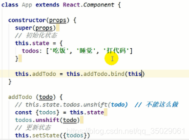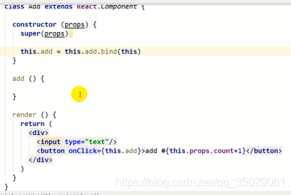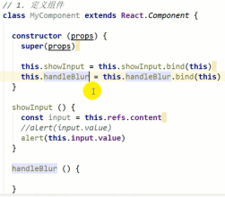 重写组件类render方法,新增handleClick内部this默认是undefined,让this要指向组件对象。